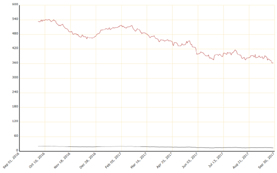 巴西中南部17/18年度已于4月开榨,截至9月上半月的甘蔗压榨量同比减少1.55%,至4.27亿吨,但由于榨季前4个月的制糖比保持高位,累计糖产量同比增加5.88%,达到2638.6万吨。市场对巴西中南部17/18榨季产量预估在3520-3620万吨,16/17榨季约为3560万吨,处于近几年巴西生产水平的高端。