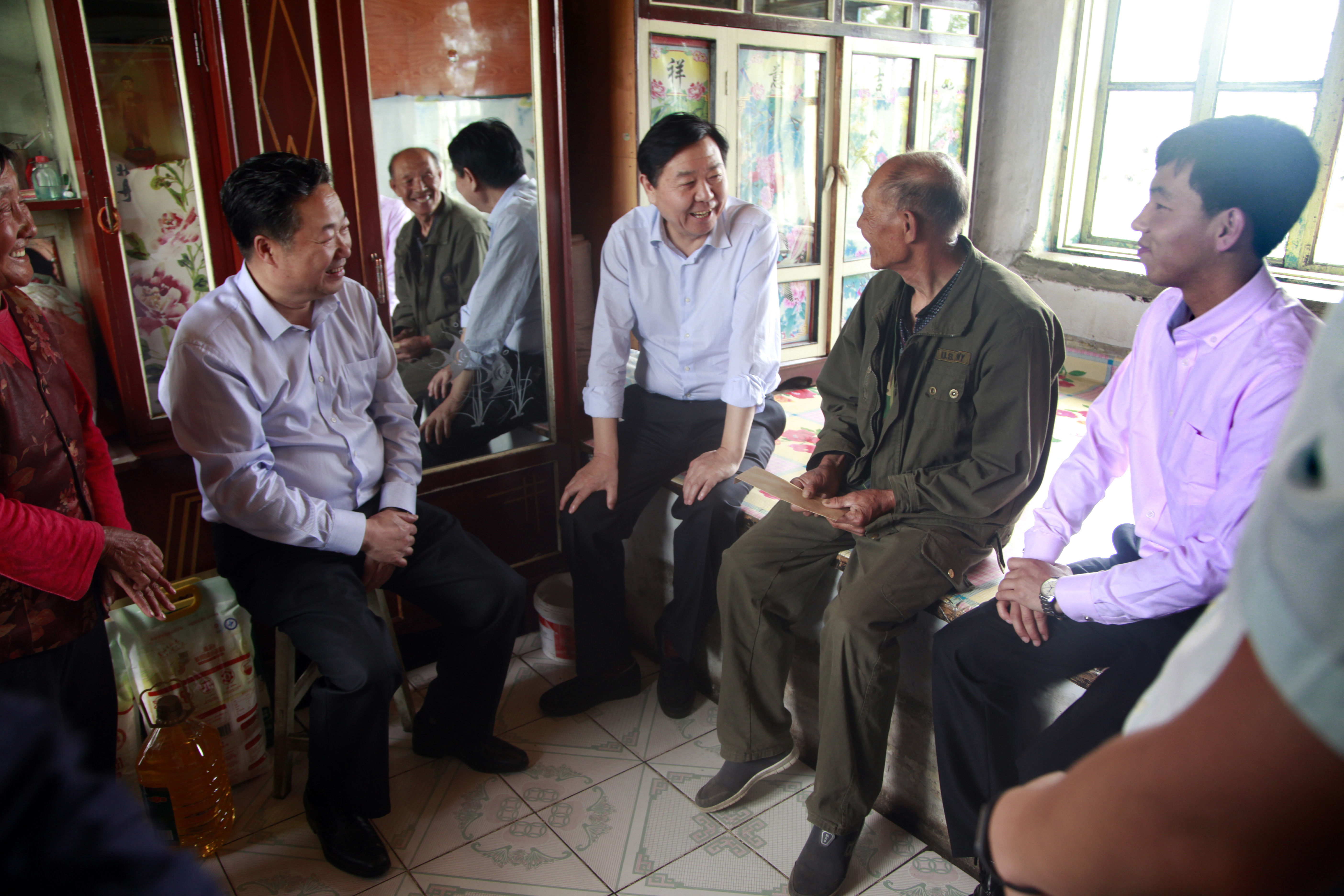 ▲中粮集团党组书记、董事长赵双连(右三)带队前往中粮7个定点扶贫县之一的黑龙江省哈尔滨市延寿县考察调研扶贫工作,专程深入崇和村2家贫困户慰问了解情况。