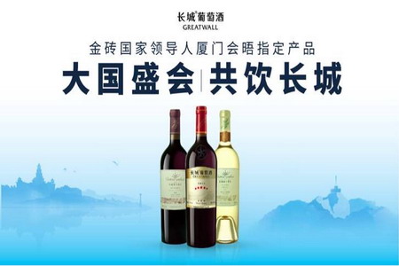 作为本届金砖国家领导人会晤的主席国,中国以最高规格标准款待四方来宾,国产葡萄酒实力担当——长城葡萄酒携旗下明星单品长城五星干红及长城桑干酒庄特级精选赤霞珠干红、长城桑干酒庄雷司令干白、长城桑干酒庄首席酿酒师甄酿干红等数款珍品登台亮相。各方嘉宾共同举杯,共祝五国合作共赢未来。