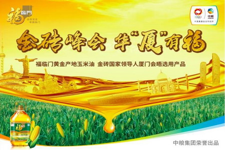 “金砖峰会,华‘厦’有福”。黄金品质的中粮福临门黄金产地玉米油,再一次代表国内粮油企业和品牌,以“黄金品质”耀眼亮相此次高规格金砖会议,全程负责与会领导人与来宾的饮食与健康。福临门黄金产地玉米油精选北纬45度世界黄金玉米带优质非转基因玉米胚芽,采用四低三高的玉米胚制取技术,不含胆固醇,含植物淄醇、亚油酸、维生素E等18种营养成分,将为金砖会议的顺利召开提供全方位的食品安全保障。