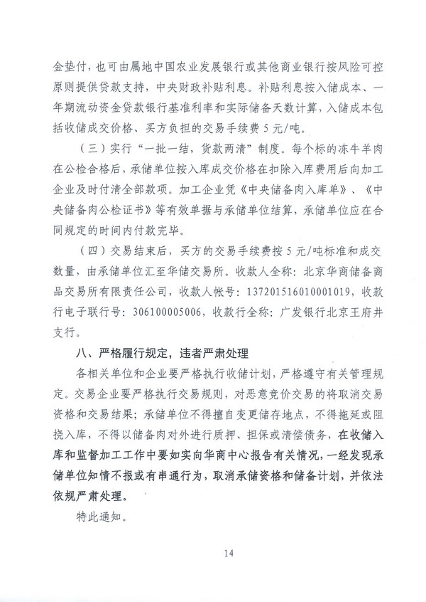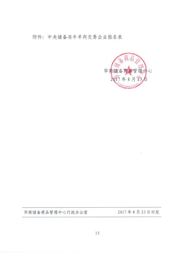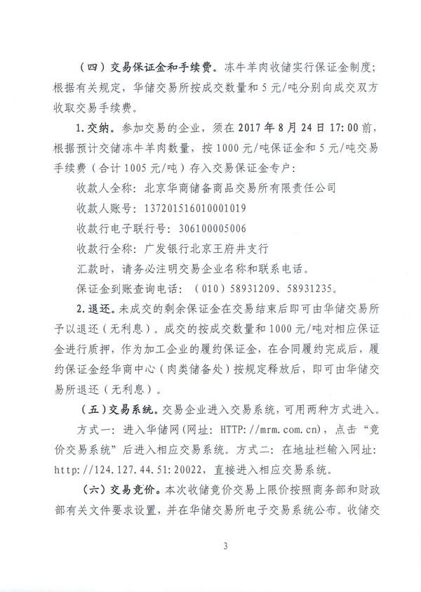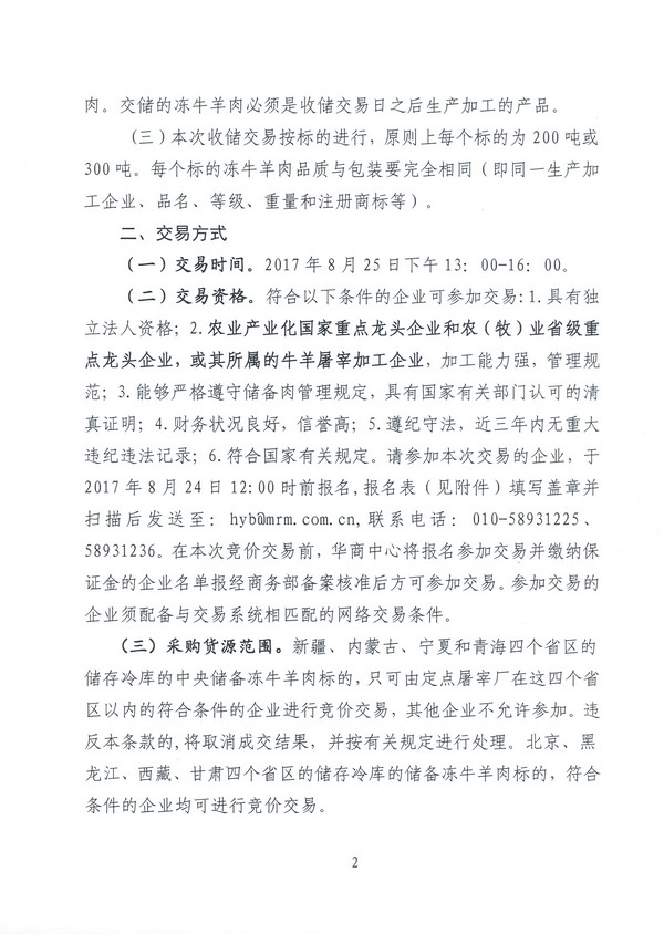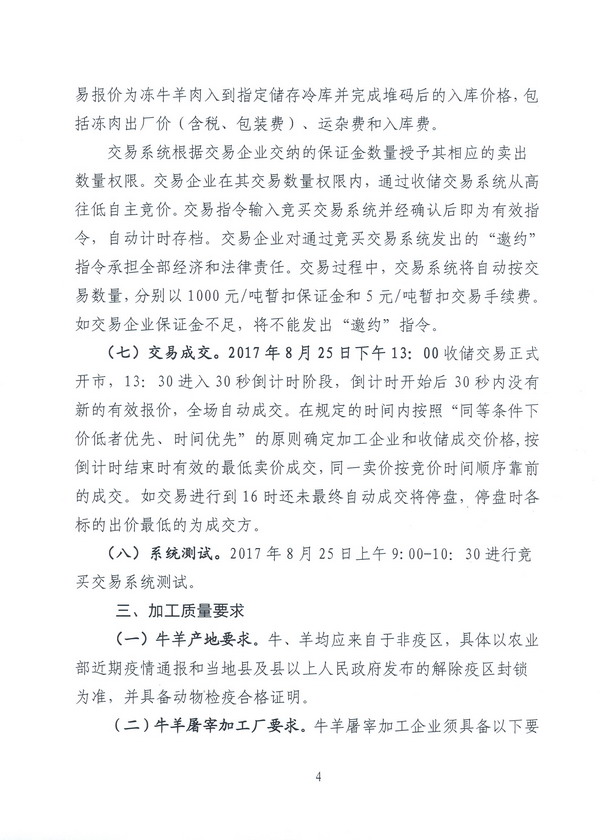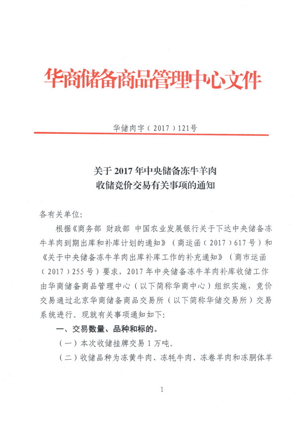 关于2017年中央储备冻牛羊肉收储竞价交易有关事项的通知