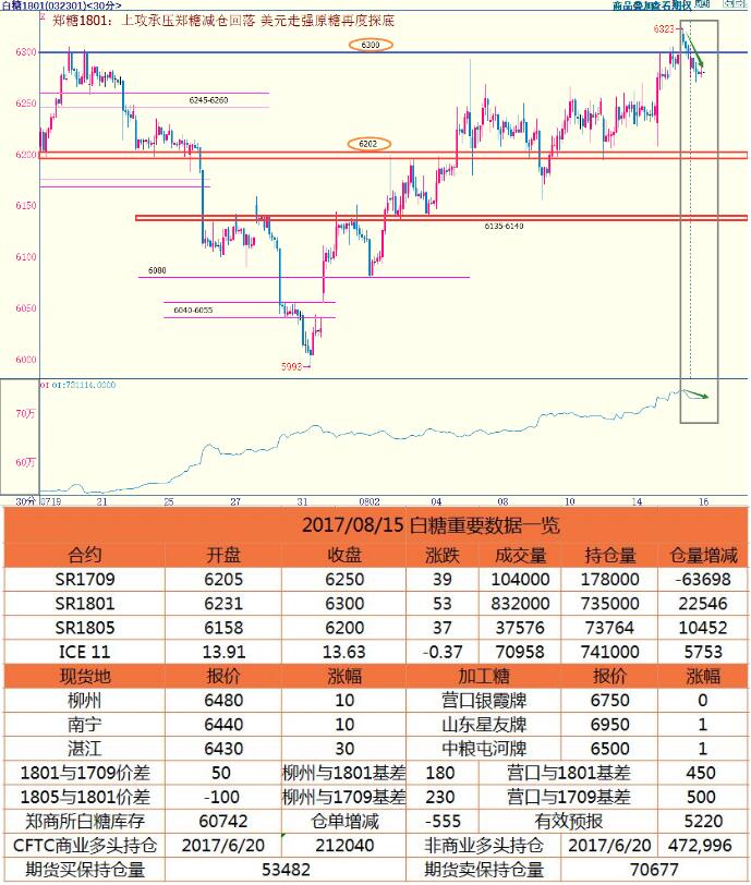 从盘后持仓来看,五矿经易继续加空较为明显,较为疑惑的是中粮席位大举加多,这似乎与其产业地位有所不符,难道只是为了博几十点的反弹,这是比较典型的短线投机操作思路,值得商榷。总体来说,近期国内糖市期、现货市场都出现稳中向好走势,但这并不代表着趋势已经改变,大家也都知道中秋、国庆双节消费高峰期一过,就将面临着新糖上市的问题,以目前1801的价格来看,其形态虽有上行反弹触及更高价位的可能,但是我们也提到过,可能也就是盘中一现,逼一些不坚定的空头出局。