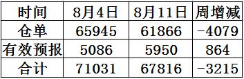 仓单+有效预报周合计减少3215张,流出速度偏慢,仓单流出多集中在产区库点居多,销区甜菜仓单流出量较少。