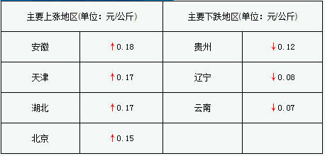 今日部分地区猪价:四川6.1-6.4元/斤,河南6.1-6.4元/斤,江西6.4-6.6元/斤,广东6.8-7.0元/斤,湖南6.2-6.4元/斤,山东6.4-6.6元/斤,湖北6.2-6.4元/斤,河北6.3-6.6元/斤,北京6.3-6.6元/斤,辽宁6.3-6.6元/斤。