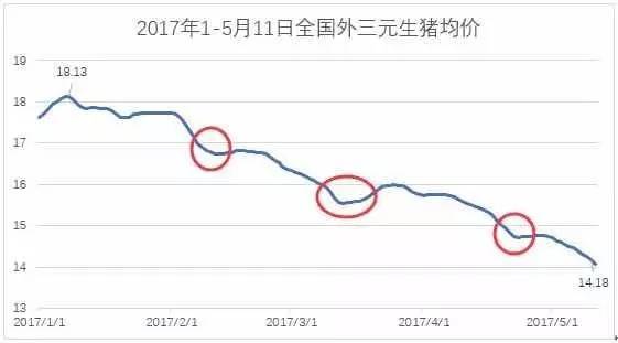 经历了这波行情以后,猪肉价格调整似乎已成必然。从今年1月份到现在,全国生猪出栏均价从18.19元/公斤滑落至低于14元/公斤。