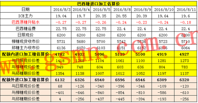 虽然隔夜外盘价格波动不大,但是现货升贴水却出现6个点的较大幅度调整。导致在盘面微幅收跌的情况下,巴西进口糖估算价还有所上涨。