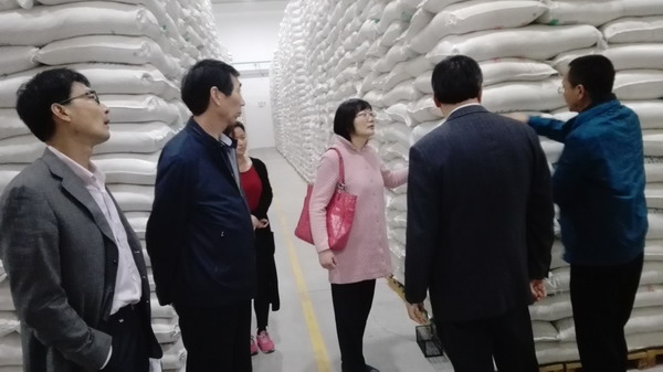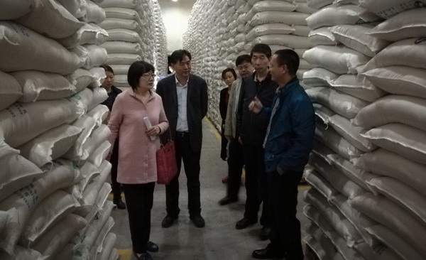 本网讯 2016年4月20日,商务部市场运行和消费促进司李习臻副司长、刘虎成处长一行冒雨到江苏镇江华储物流糖库一线生产现场,检查指导中央储备糖管理和防汛度夏工作。在逐个库房查看储备糖数量、质量、日常管理和防汛准备情况,亲自登上糖垛仔细察看,听取糖库负责同志汇报后,李习臻副司长对该库中央储备糖管理工作和防汛度夏准备工作予以充分肯定,并作了重要指示。李习臻副司长强调,受厄尔尼诺事件影响,今年我国长江流域等地区防汛形势严峻,各中央储备糖库承储企业要继续强化责任落实,高度重视强降雨天气的防范和应对工作,全力做好防汛度夏工作,确保中央储备糖安全。江苏省商务厅、镇江市商务局和华商储备中心有关人员一同参加。