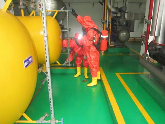 本次液氨泄漏演练是德州华商“安全生产月”活动方案之一,演练内容包括人员抢救和疏散、对泄漏点的抢险堵漏。在演练过程中,各小组通力合作,“中毒受伤人员”得到救治,全体职工能够及时疏散,液氨泄露点被成功堵住,应急演练圆满结束。