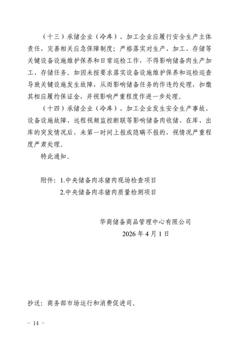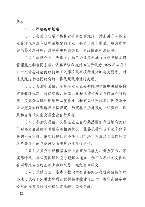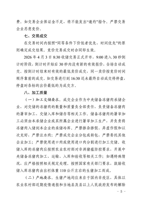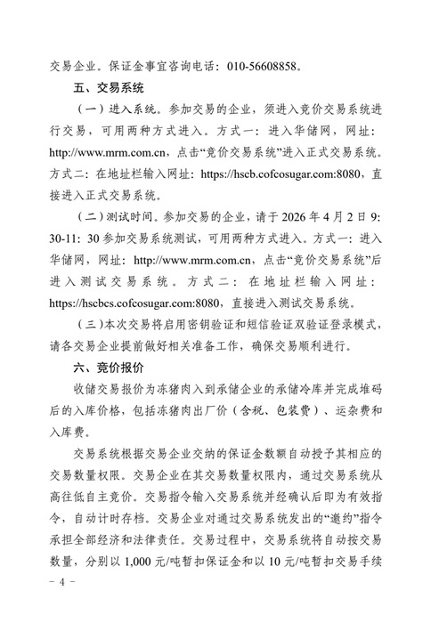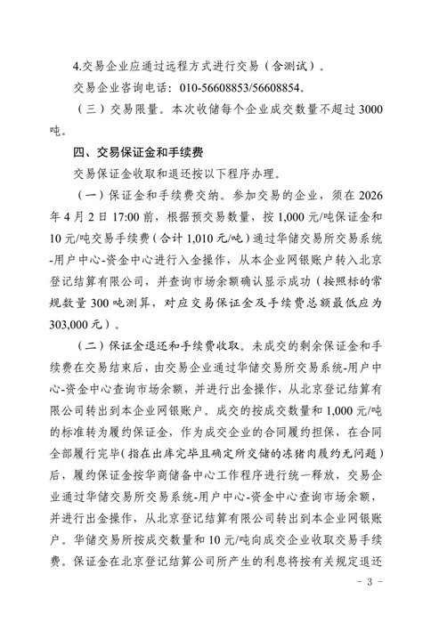 关于2026年4月3日中央储备冻猪肉收储竞价交易有关事项的通知