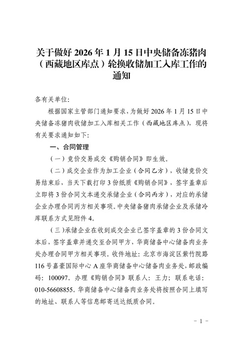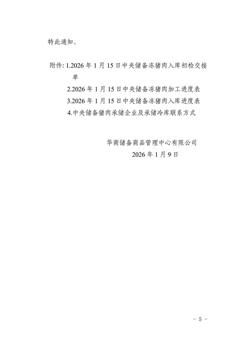 附件2:2026年1月15日中央储备冻猪肉加工进度表